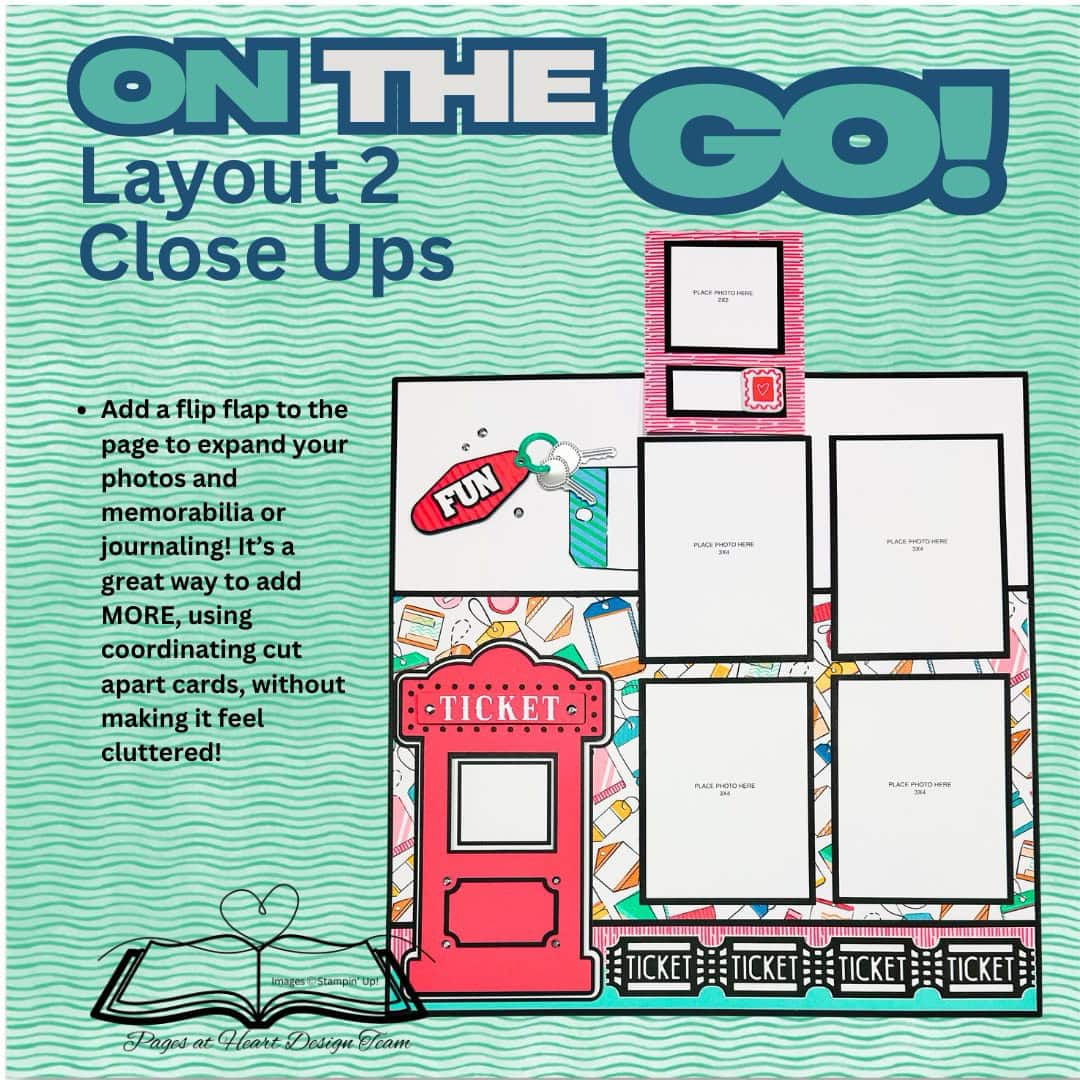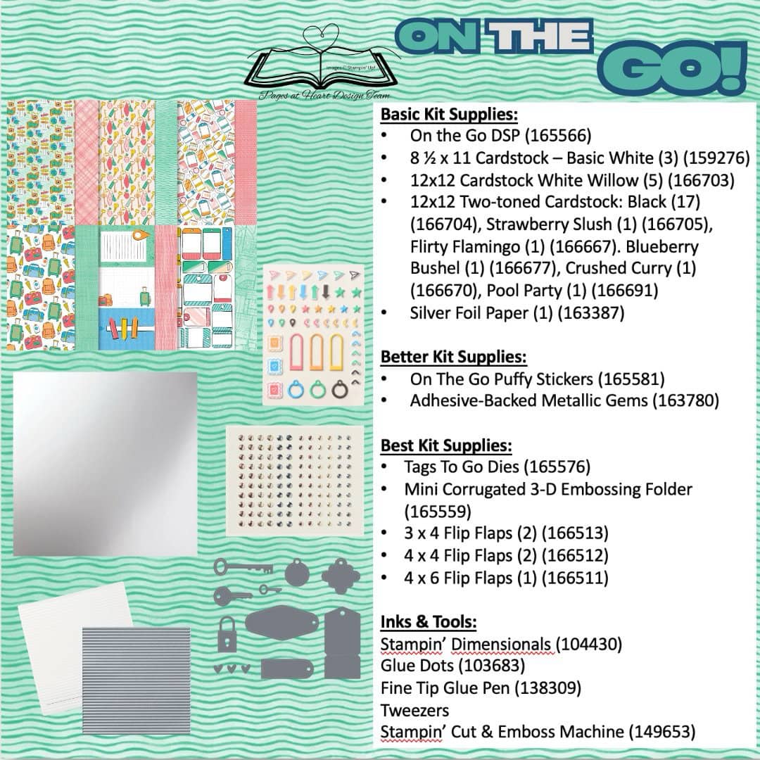 This month’s Pages at Heart Design Team Scrapbooking Workshop Guide features the On the Go papers and accessories that are intended to be travel centric. However, these layouts are all about adventure and FUN! No travel necessary! It can include travel or stay at home family game nights!